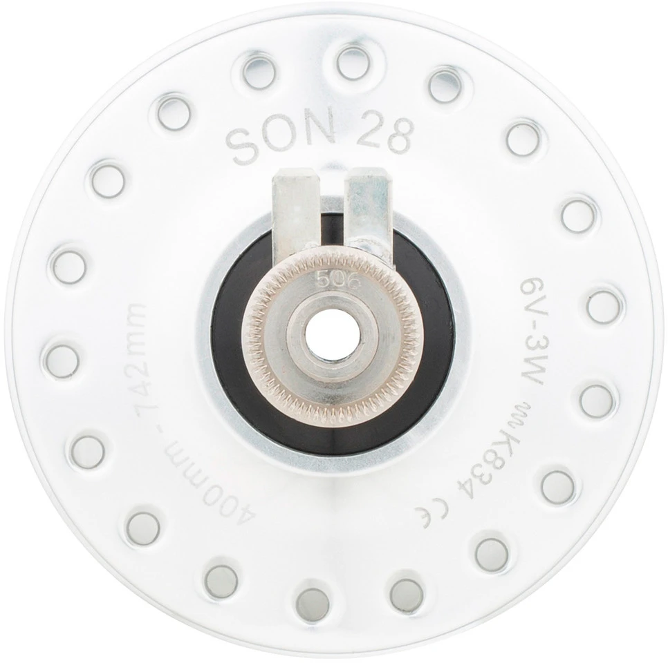 Der SON 28 ist ein universell für alle Laufradgrößen von 16″ bis 29″ zugelassener Nabendynamo. Die Nennleistung erreicht er im 28″ -Rad bei ca. 16 km/h. Damit ist er zu empfehlen, wenn bei langsamer Fahrt besonders viel Licht benötigt wird oder andere Geräte betrieben bzw. deren Akkus geladen werden sollen. Im Vergleich zum Vorgänger Son klassik konnten die Leerlaufverluste um ca. 15 % und das Gewicht um 140 g verringert werden.