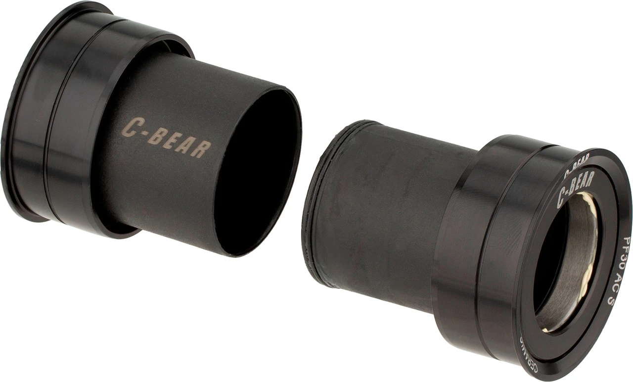 Die Lagerschalen der C-BEAR Innenlager bestehen nicht etwa aus Plastik, sondern aus CNC-präzisionsbearbeitetem Aluminium. C-BEAR hat sich schon sehr früh, nämlich schon 2011/2012, als Kunststoff-Zusätze gerade in Mode kamen, auf eine Anti-Plastik-Haltung festgelegt. Metallgehäuse bedeuten höhere Genauigkeit, geringere Toleranzen sowie das Vermeiden von Flex und Deformation.